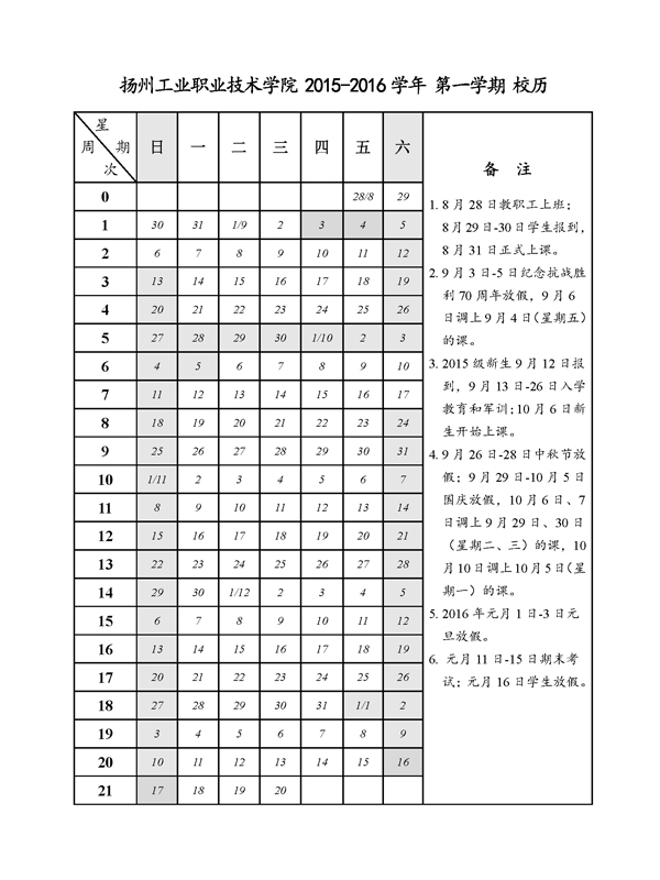 金年会2015-2016学年校历